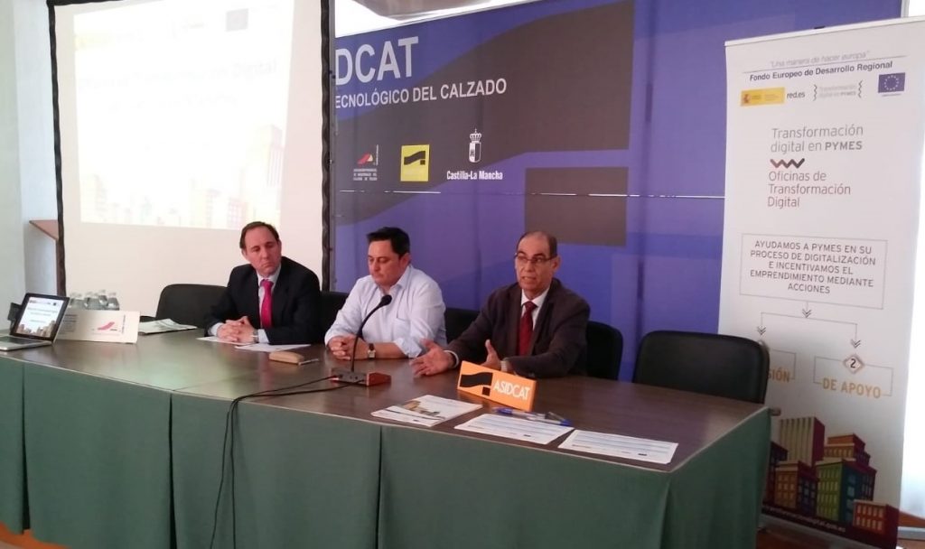 El delegado de la Asociación de Ingenieros Industriales en Toledo, Enrique del Castillo, y el director de la Oficina de Transformación Digital de Castilla-La Mancha, Manuel Roque, han presentado en la Asociación de Investigación y Desarrollo del Calzado y Afines de Toledo (ASIDCAT), los servicios que ofrece la Oficina de Transformación Digital de Castilla-La Mancha a empresarios, autónomos y emprendedores para abordar la transformación digital de sus proyectos y negocios.